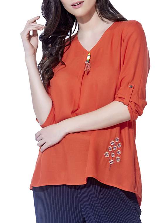 - » roll up sleeved embroidered top