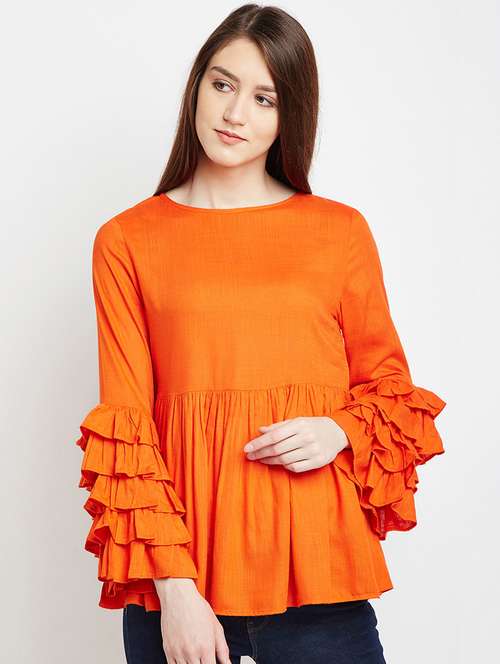 layered frill sleeved a-line top