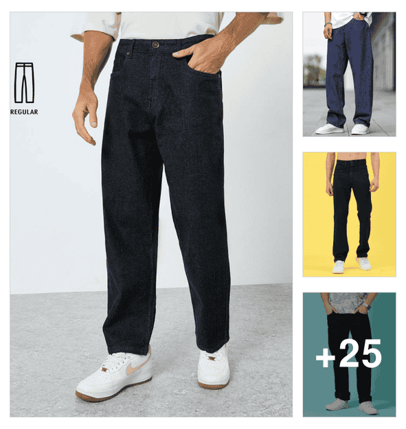 men plain mid rise relaxed fit jeans