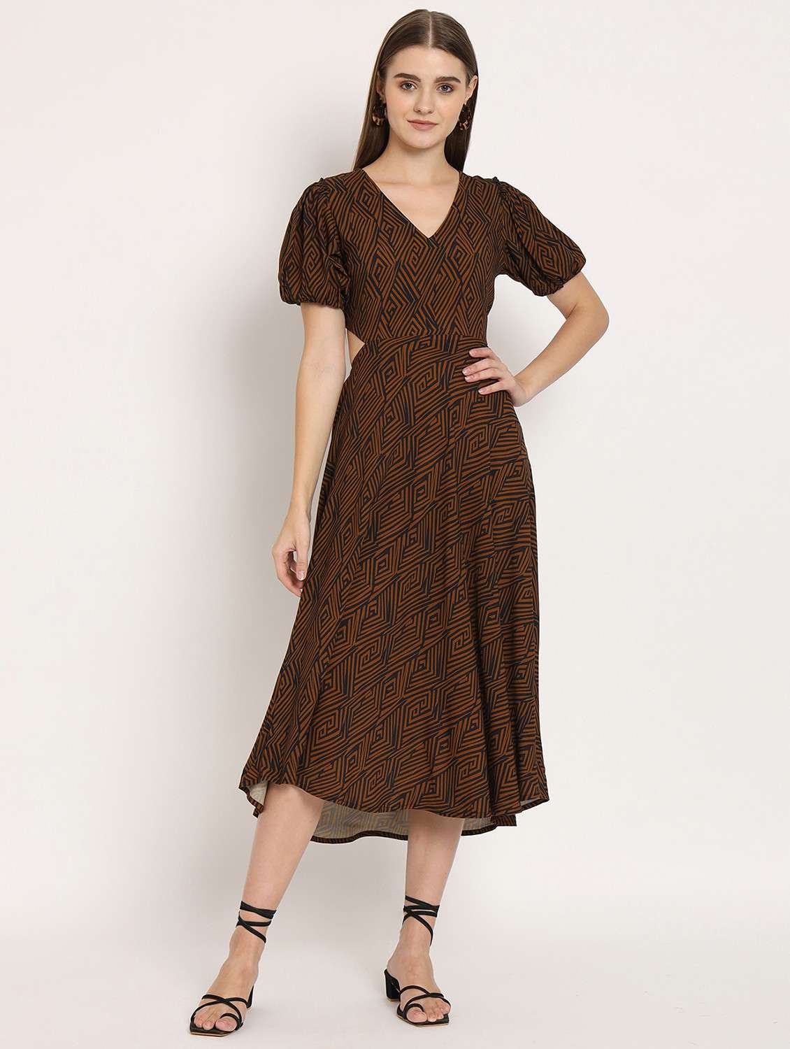 - Dress up in a soothing pattern and don this dress made of rayon material.