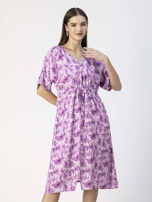 *Includes: This Clothing Consists Of 1 Dress (Any Accessories Worn By The Model Are Not For Sale)*Material: Viscose Rayon*Dress Length: 42 Inches (Approx.)*Model Stats: The Model In The Image Is 178 Cm Tall, And Bust 34\ Inches Is Wearing Size - (S) Small *Features: Short Sleeve, V Neck, Drawstring At Waist, Front Slit, Fit And Flare, Resort Style, Lightweight And Tie Dye Printed Pattern*Care: Medium Machine Wash, Warm Iron, Iron While Damp. (After Washing Do Not Dry The Fabric On High Heat And Do Not Dry Fully. Medium Heat Is Best And Removes Just Prior To Being Completely Dry)*Size Information: Please Refer To Our Size Chart Before Making The Purchase. If Your Size Is In Between Two Sizes, We Recommend That You Choose A Larger Size*Tags: Printed Slit Dress For Women, Slit Dress For Women Casual, Long Dress For Women, Long Dress For Women, V-Neck Dress, Tie Dye Dresses For Women, Resort Wear