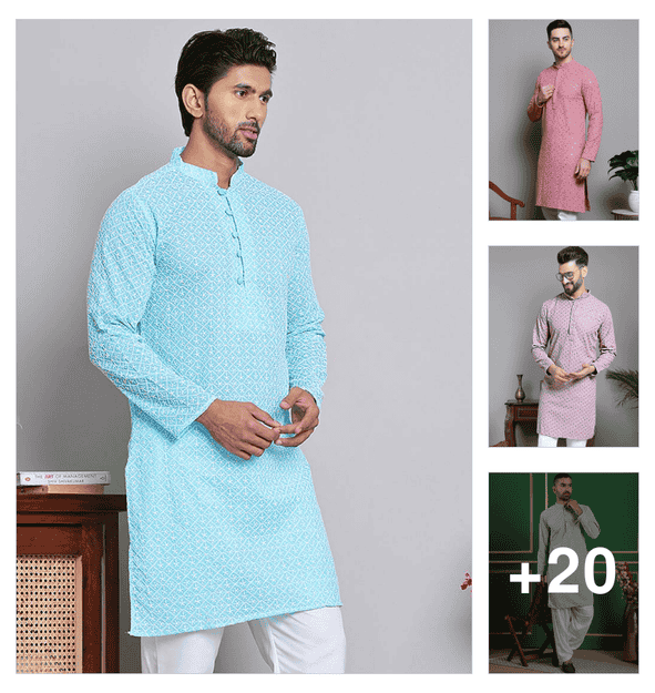 men embroidered mandarin neck long kurta