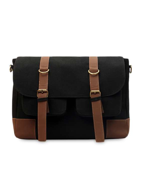 patch pockets colour block canvas messenger bag - 1073935 - Very Small Image - 1