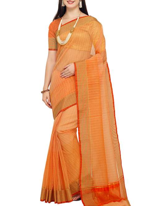 colour block striped border saree with blouse - 15402249 - Very Small Image - 1