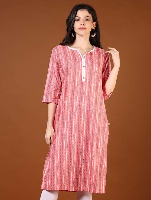 - Grab this beautiful kurta made up of cotton fabric featuring notch neck designs.