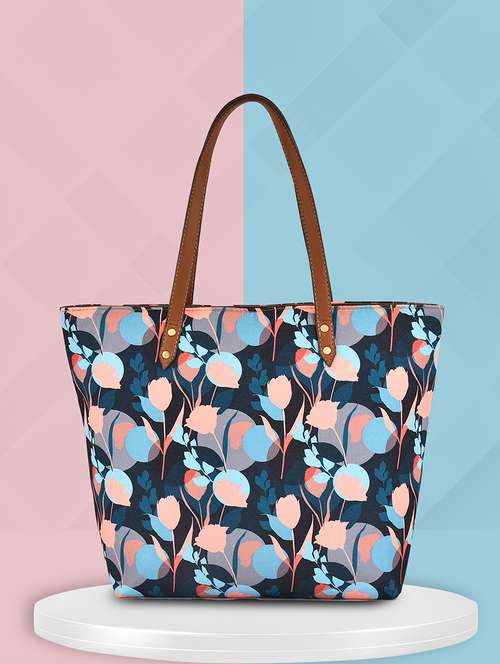 - Expand your bag collection with blue shades of totes handcrafted with unique designs having spacious structure to fit in all your essentials.