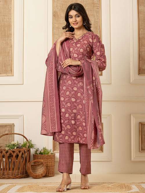 - Find gorgeous sets of ethnic wears in trending designs in peach colors suitable for casual wear of occasions.