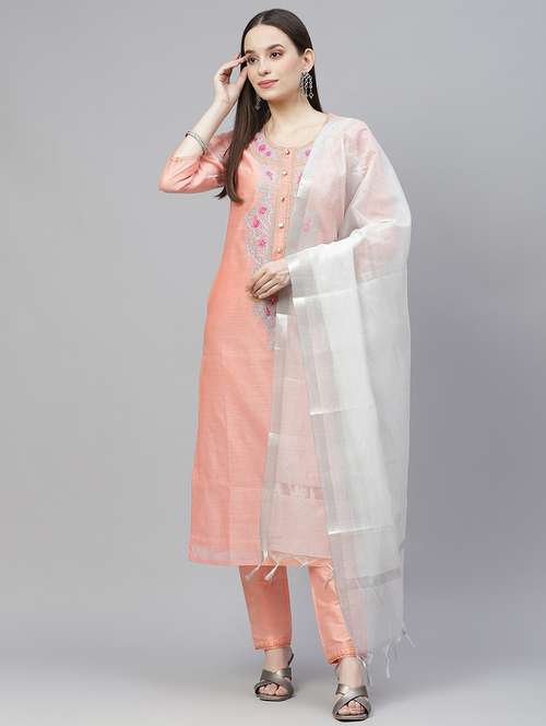 peach chanderi suit set
