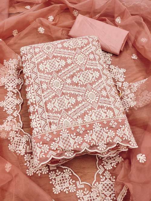 - Look ultra gorgeous in unstitched suits from Leeli Peeri Designer and grab these beautiful suits in peach colour.