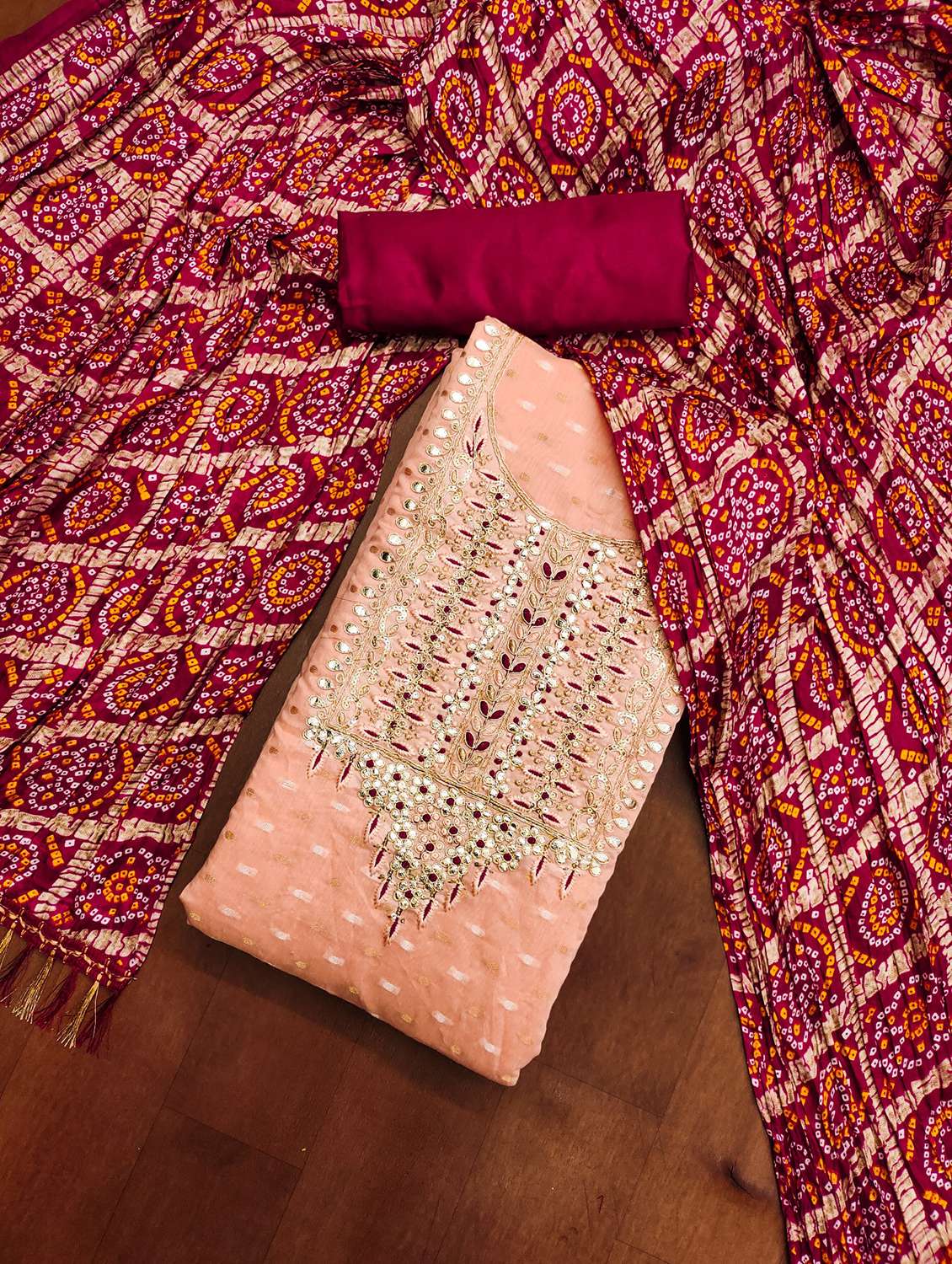 - Look ultra gorgeous in unstitched suits from Leeli Peeri Designer and grab these beautiful suits in peach colour.