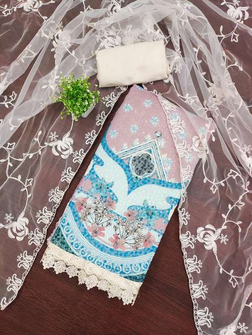 women printed with embroidered work unstitched suit set - 21981169 - Very Small Image - 1
