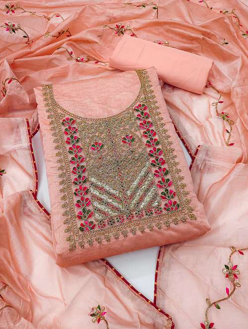 - Look ultra gorgeous in unstitched suits from Leeli Peeri Designer and grab these beautiful suits in peach colour.