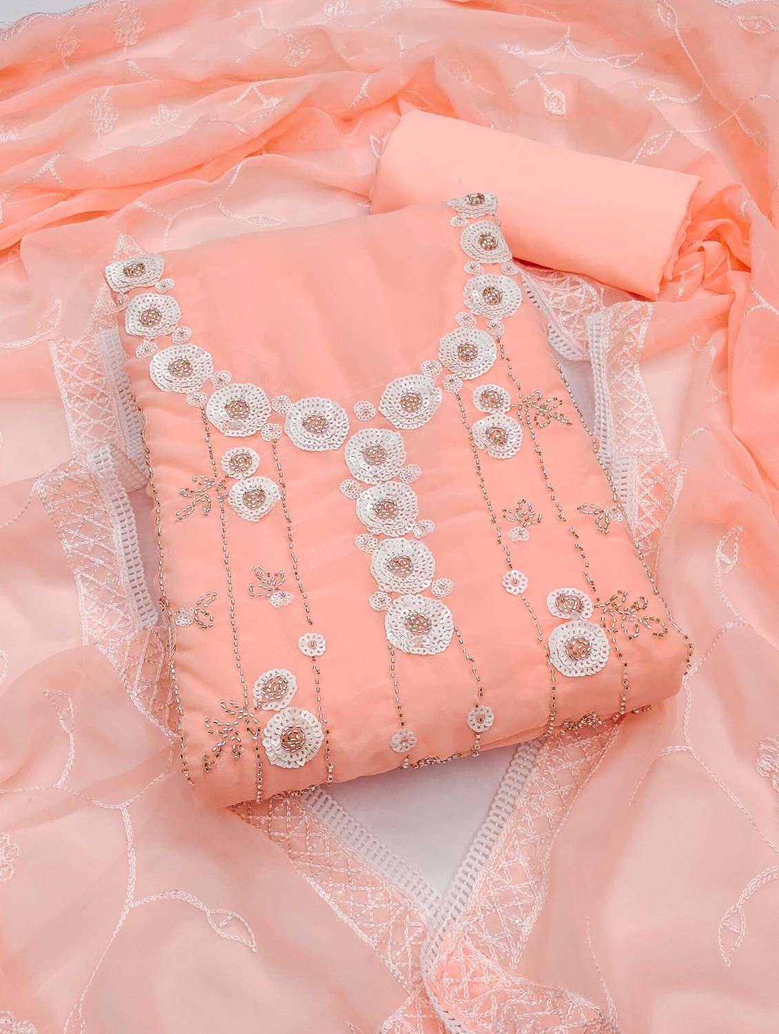 - Look ultra gorgeous in unstitched suits from Leeli Peeri Designer and grab these beautiful suits in peach colour.