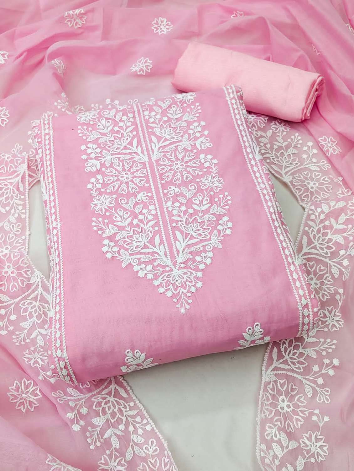 peach cotton blend unstitched suit