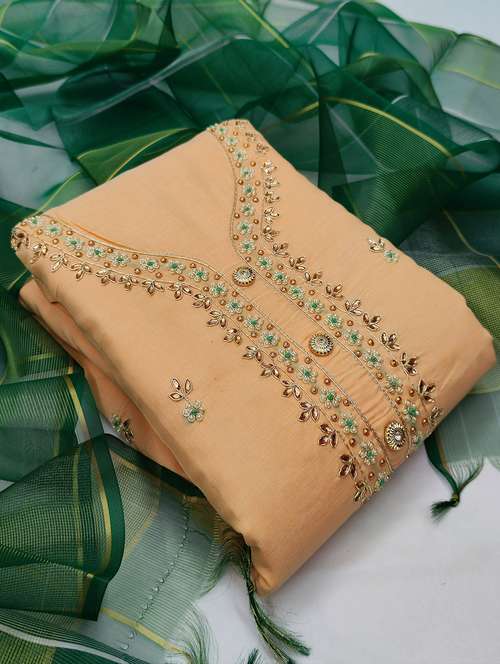 - Look ultra gorgeous in unstitched suits from Manvaa and grab these beautiful suits in peach colour.
