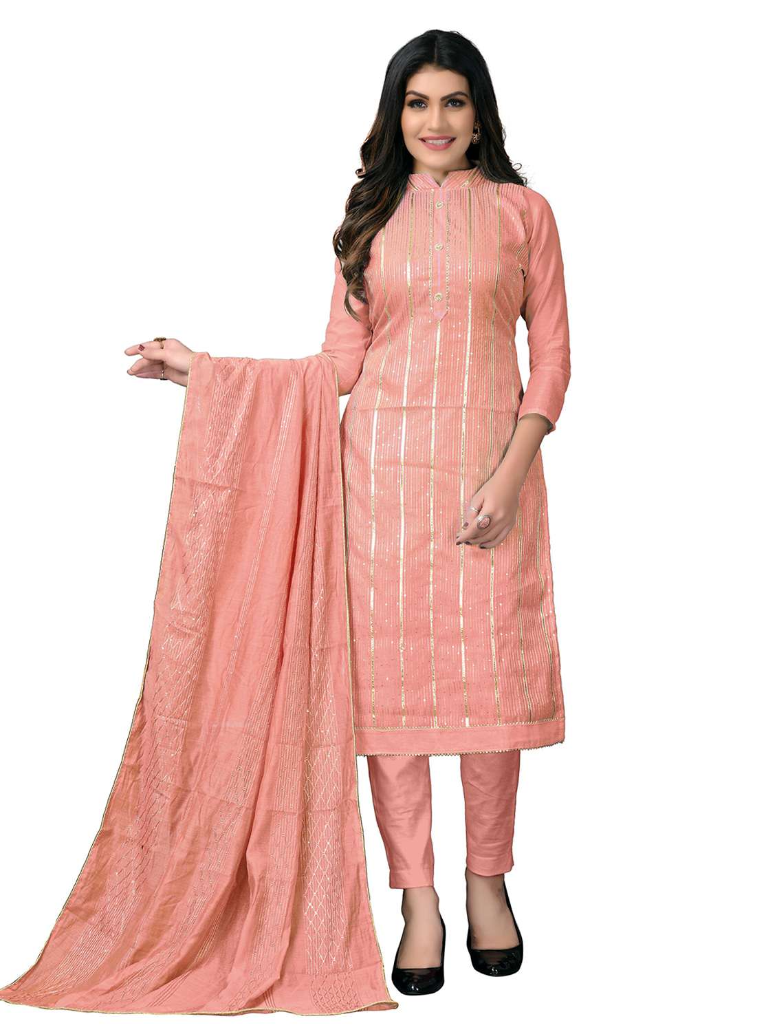 - Look ultra gorgeous in unstitched suits from Manvaa and grab these beautiful suits in peach colour.
