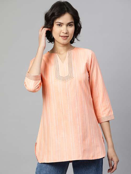 - » peach striped regular top
