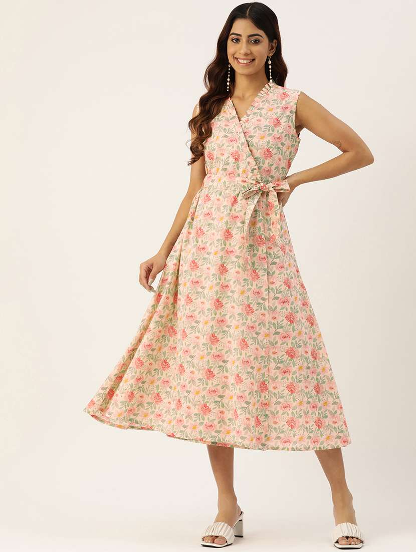 - Dress up in a soothing pattern and don this dress made of cotton material.