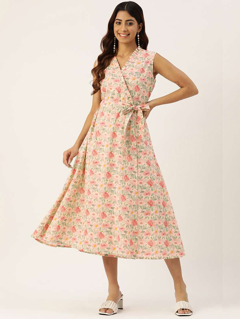 - Dress up in a soothing pattern and don this dress made of cotton material.