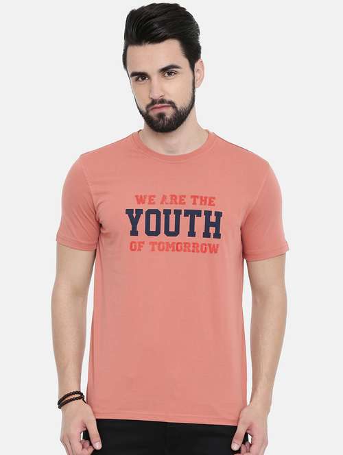 - » peach typographic chest print t-shirt