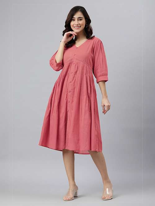 - Dress up in a soothing pattern and don this dress made of cotton material.