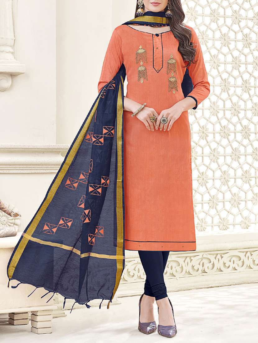 peach embroidered unstitched churidaar suit