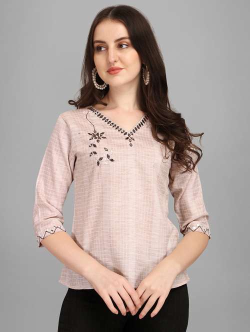 - » women beige embroidered regular top