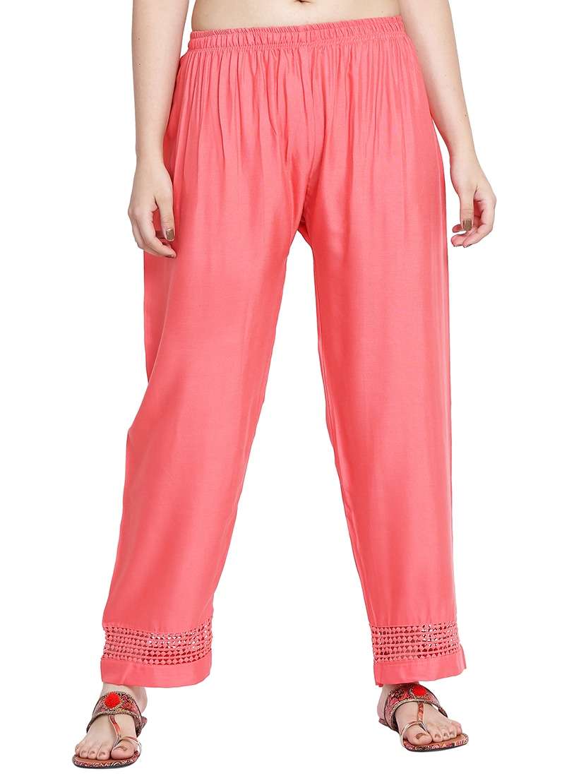 peach solid straight palazzo - 16341423 - Very Small Image - 1