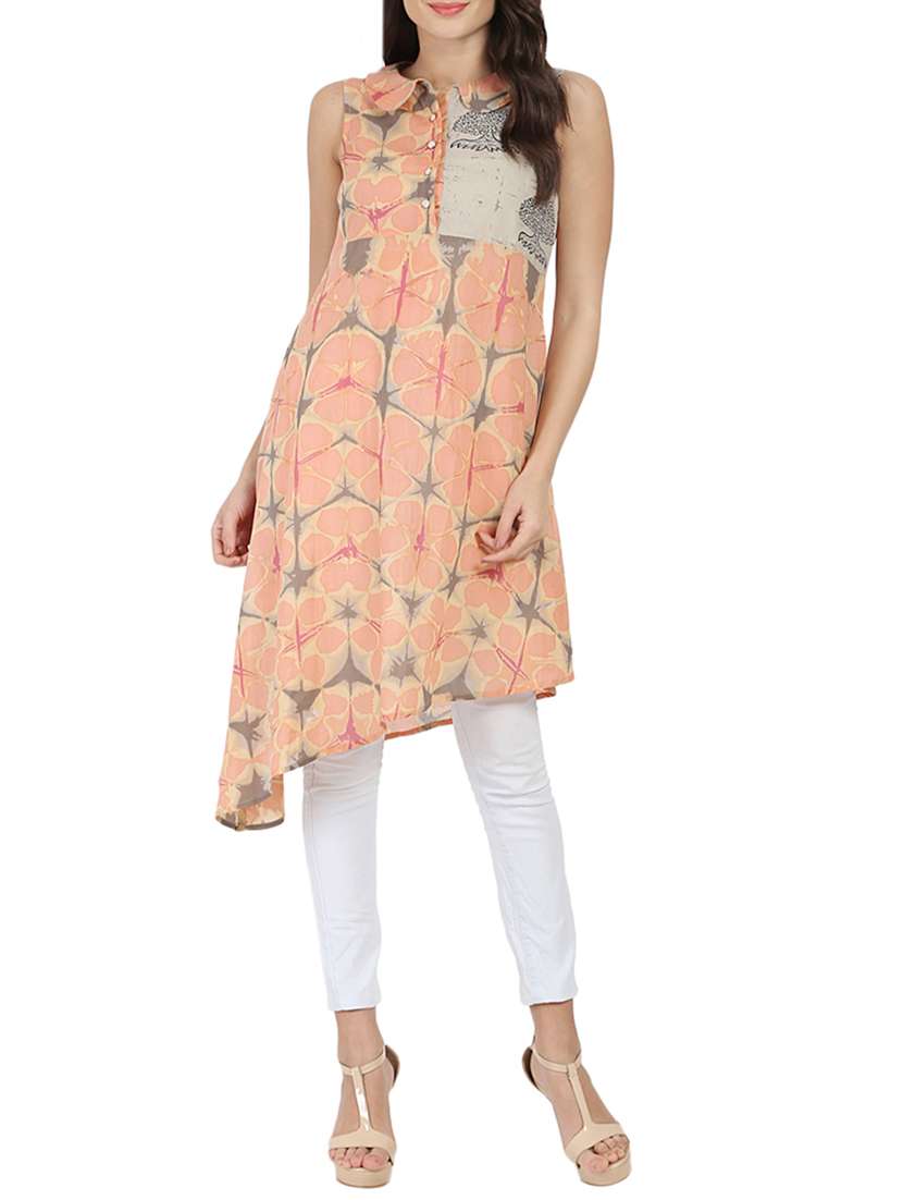 - » peach cotton asymmetric kurta