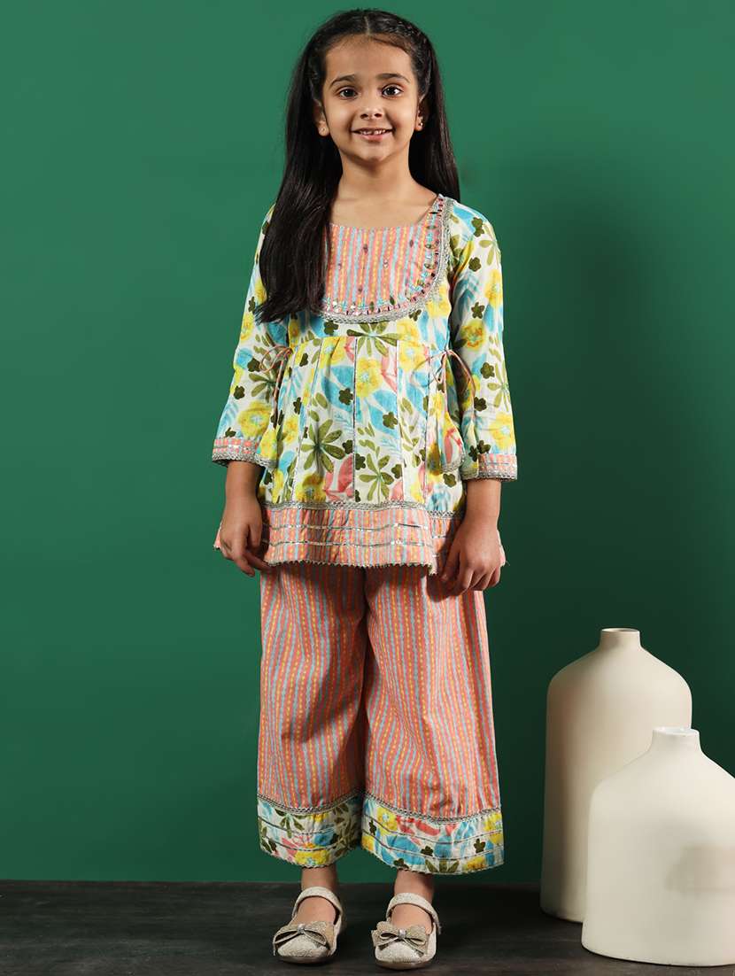 - » girls peach cotton kurta pant set