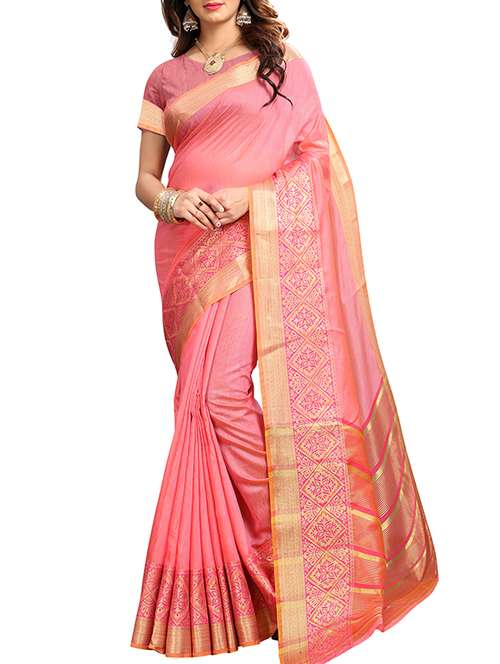 women's bordered peach colored saree with blouse - 16041482 - Very Small Image - 1