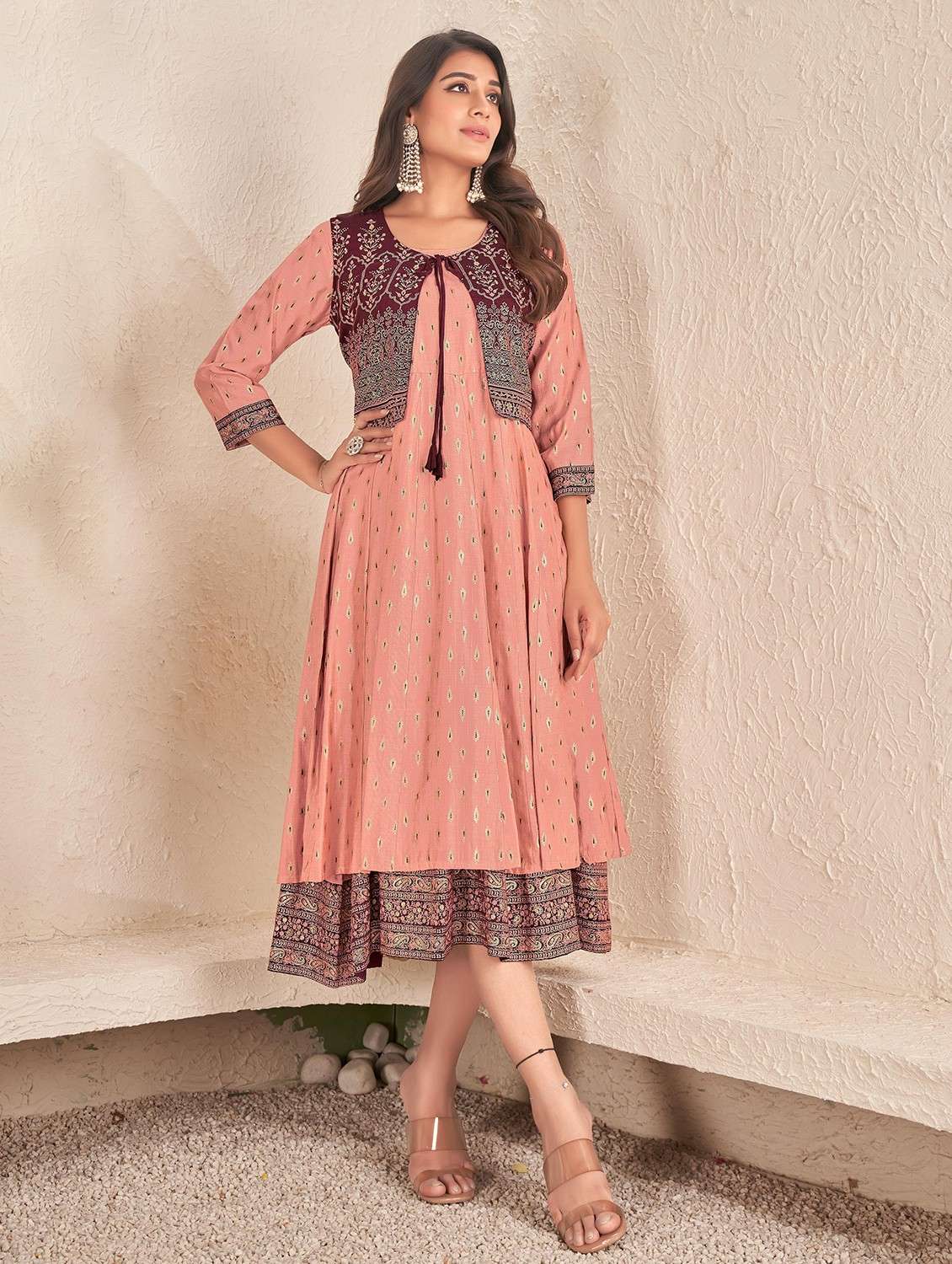 - » women peach round neck anarkali dress