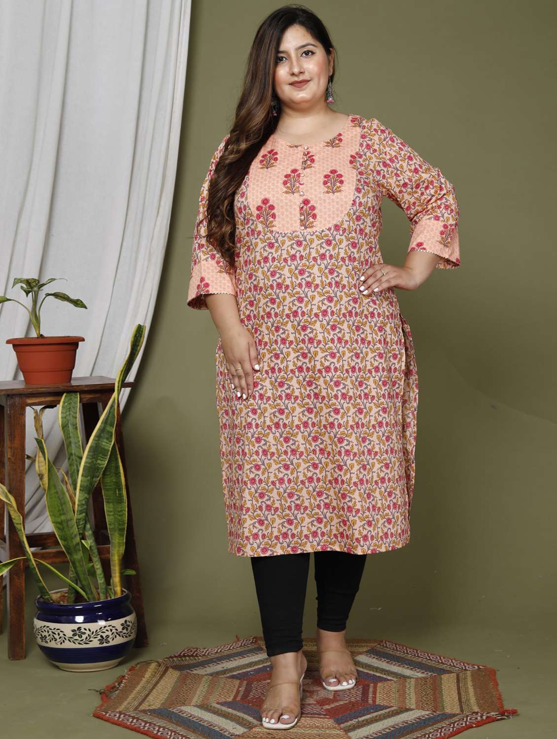 - Grab this beautiful kurta made up of cotton fabric featuring round neck designs.
