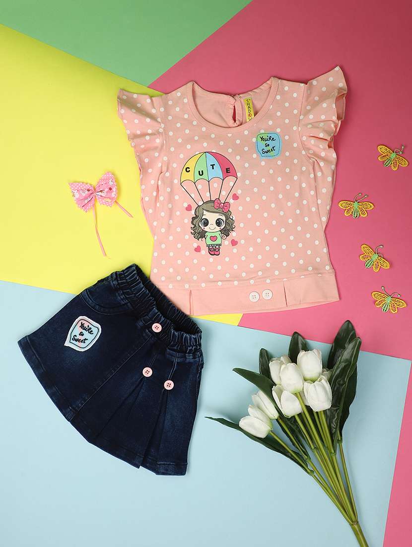 pink printed top & skirt set