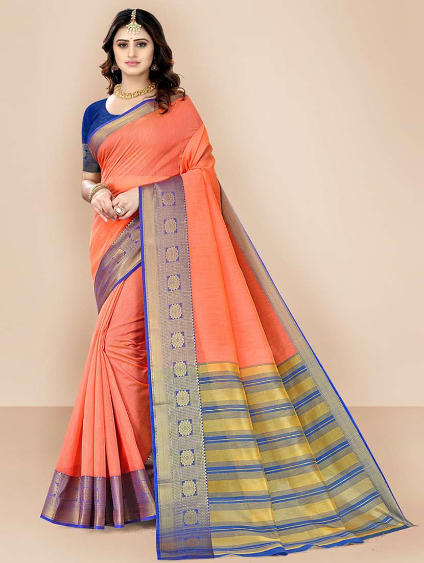 - » peach woven self design saree with blouse