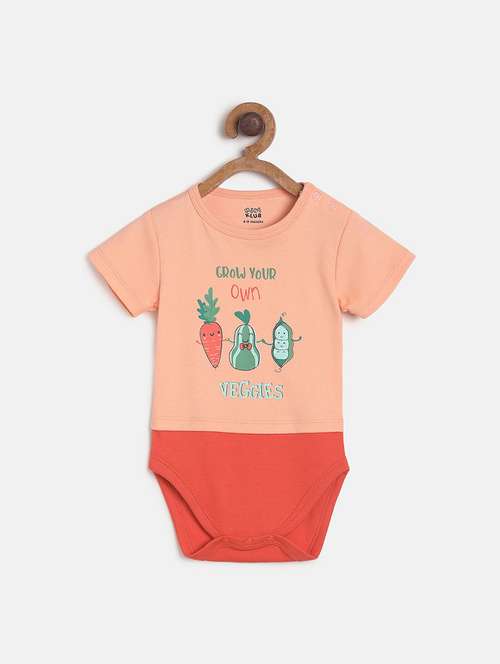 - Onesies and rompers are famous among the infants because it is comfortable and looks cute at the same time. Get one for your little one from MINI KLUB in peach colour.