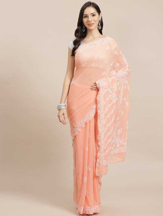 - » peach georgette chikankari saree with blouse