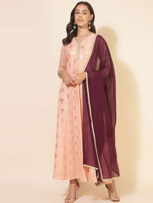 - » women peach v neck a-line kurta