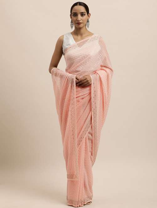 - » peach georgette embroidered saree