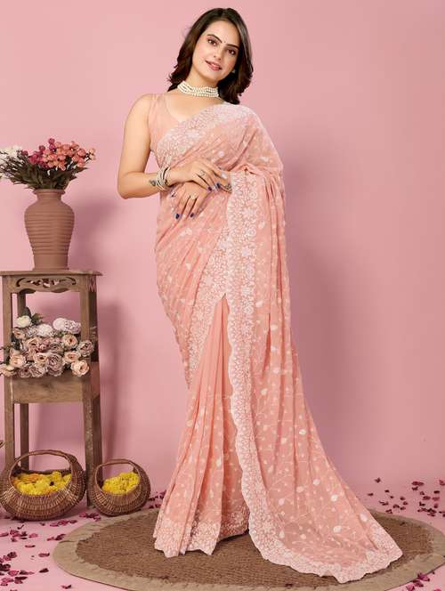 - » women peach embroidered saree