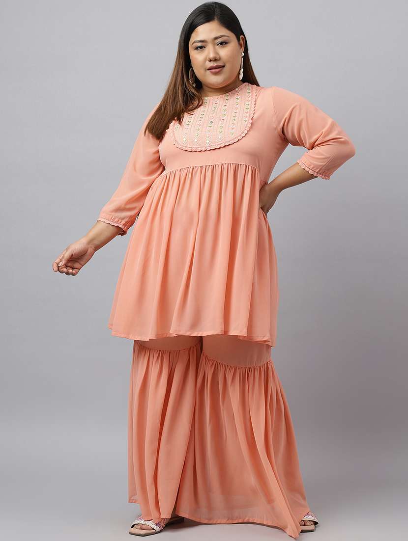 - » peach round neck kurta sharara set