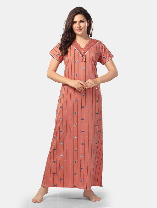 Make yourself look highly comfortable & stylish with this Shinker Cotton Nighty / Night Gowns. It has overall printed night Gown has less V neck with Short Sleeves.. It is the ultimate blend of comfort.
