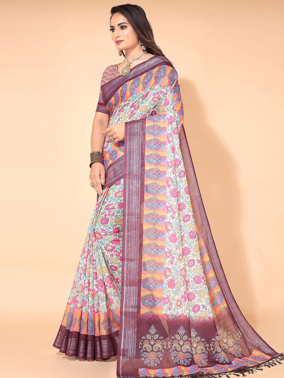 women floral printed saree with blouse - 21218149 - Very Small Image - 1