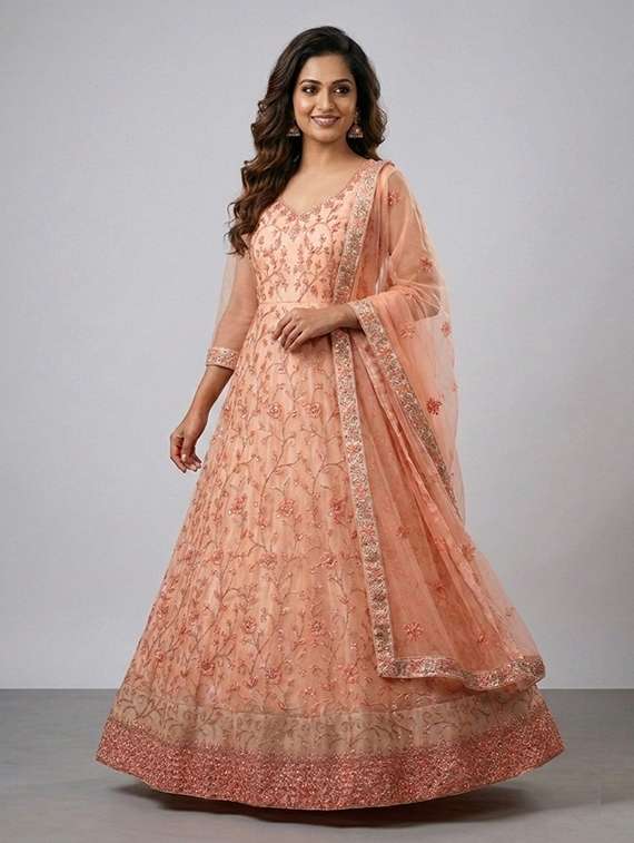 - Are you ready to make a strong fashion statement with gowns in peach hues. Grab now on limeroad.