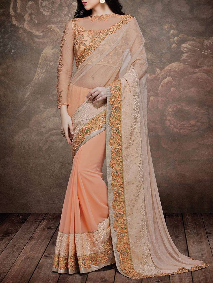 - » peach net half and half saree with blouse