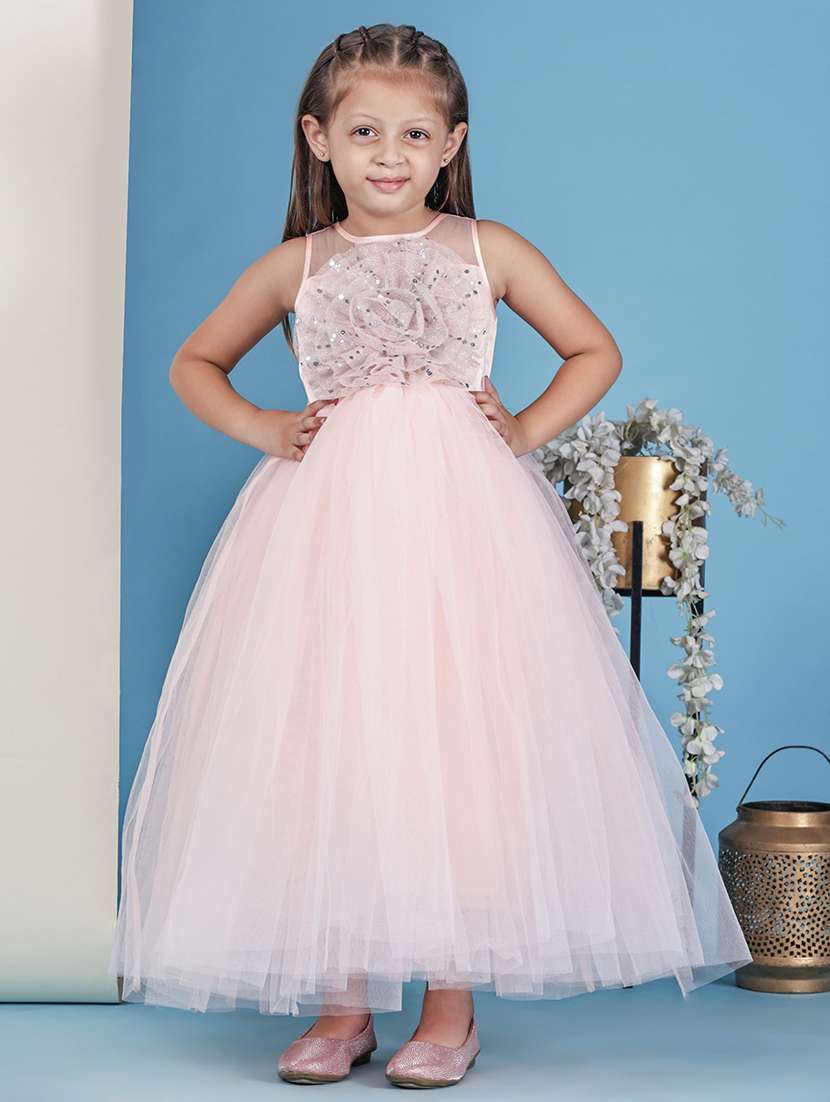 Toy Balloon Kids Peach Gown Girls Party Wear Dress