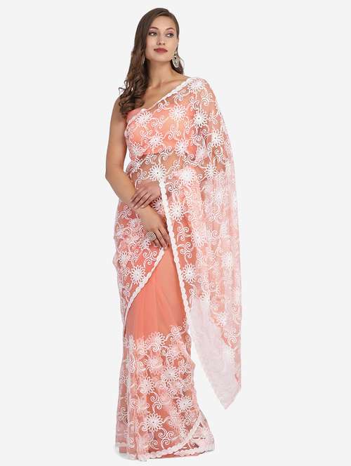- » women's floral peach colored saree