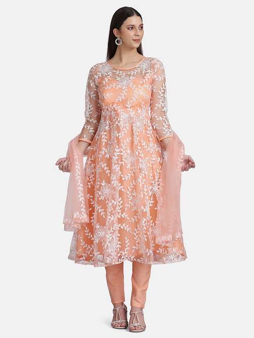 - » peach net semistitched suit