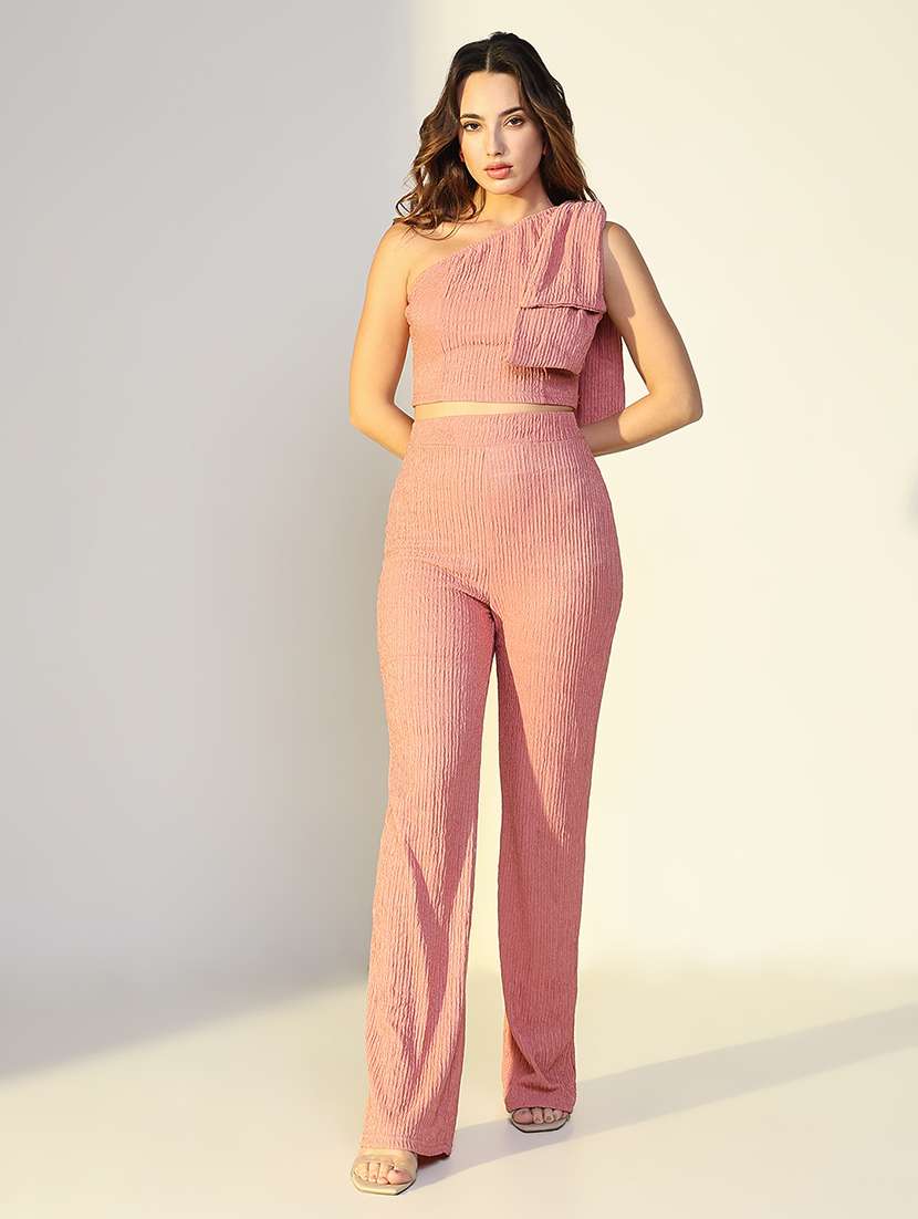 women solid top and trouser co-ord set