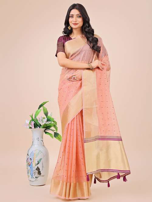 Women's Lichi Silk Rich Contrast Border Saree with Unstitched Blouse Piece